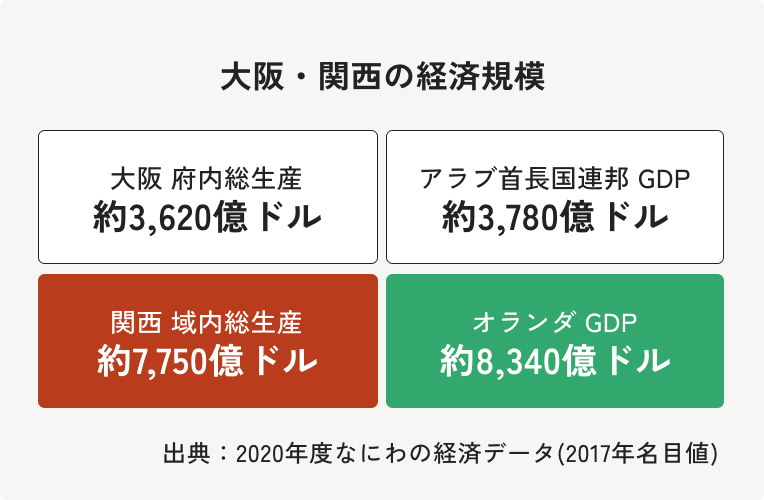 - 関西は、オランダ一国に匹敵する巨大な経済規模とバランスの取れた産業構造があり、市場規模も大きくなっています。